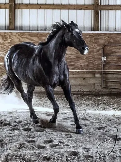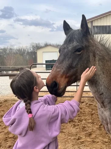 Romeo is a beautiful roan quarter horse gelding that came from Louisiana. Romeo lives up to his name with the biggest heart you will ever find. He carries himself with quiet confidence and a kind, watchful eye, always eager to greet visitors with curiosity and warmth. Whether he is out grazing in the pasture or enjoying time being brushed, Romeo brings a sense of calm and joy to everyone who spends time with him. Kenna Lelless purchased him from Jake Masters to do some roping and barrel racing. With his distinctive coloring and gentle spirit, Romeo has quickly become a favorite in the barn.