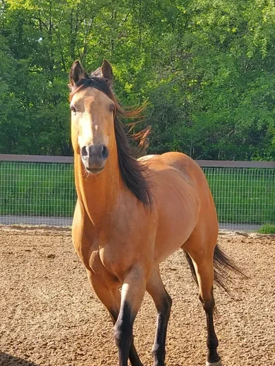 Well, it finally happened, a buckskin named Hawkeye has entered the barn at Whispering Grace Horses and he is a "looker" for sure. He comes from Iowa so the name fits him perfectly. We have been partial to buckskins for a long long time so his arrival is certainly welcomed. He is quite a guy and another trusted product of Masters Equine and Jake Masters. He is now owned by our Facilitator of Programs at Freedom Farm, Katie Walkup, along with her family. Whispering Grace Horses leases Hawkeye and soon he will be part of our programming. We are sure he will be an honor student as he begins to help change lives.
