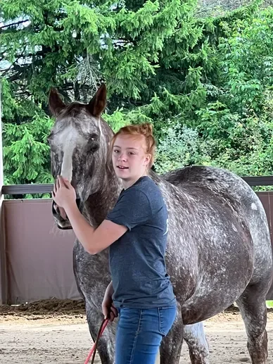 Another addition to the Whispering Grace Horses Herd has found her new home. She, as a few others under the same roof, was scheduled to be sold at the Sugar Creek Kill sale. We were fortunate to find her and she has proven day after day that she is more than willing to share the rest of her life with the families at our farm. She is a small petite snowflake pattern appaloosa with a petite head but her quiet disposition is what sealed the deal, as she displayed an almost take me....please...attitude when we looked at her, played with her, and rode her. She shadows our families as they take her from her stall or the pasture and seems to reflect "Is this for real?'" "Have I hit the jackpot or what?" Grace, as we call her, is indeed just another reflection that Hope is alive at Whispering Grace Horses and that if we take the time to show what we really feel the results can be truly amazing! The affection she shows for our children and parents alike has been remarkable to watch. Thank you Grace for simply being ...YOU!