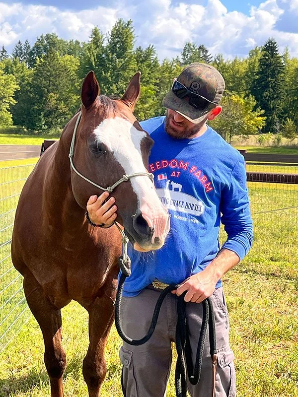 Our sessions extend far beyond riding. Healing often begins in quiet, simple moments: welcoming and helping a newly arrived horse adjust to safety and trust, brushing and grooming while connection grows, or walking alongside a horse on the trail. Participants may also take part in daily barn chores, learning responsibility, patience, and the attentive care required to nurture another living being.